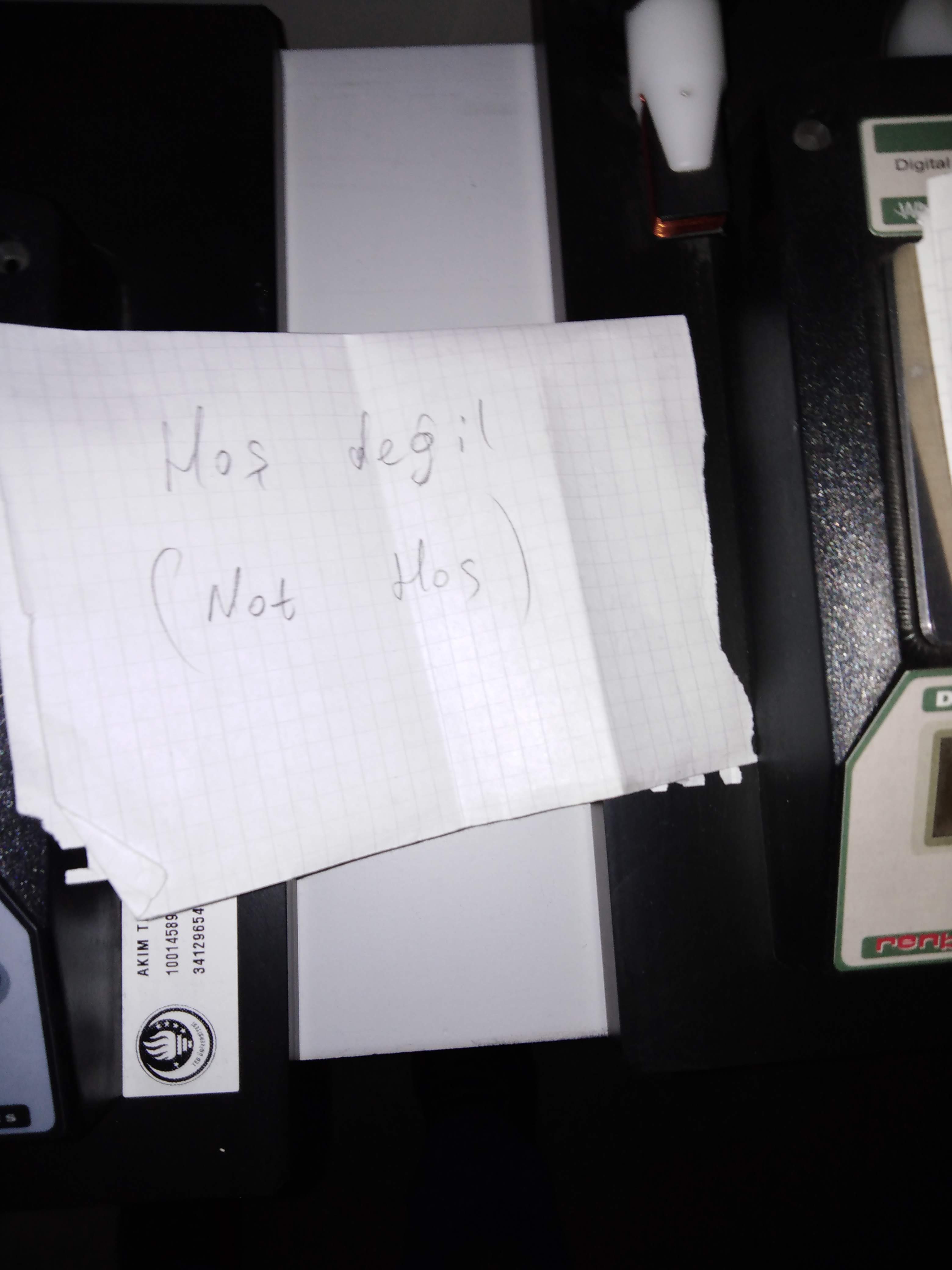 A page torn from a notebook, placed on some lab equipment. Written on it: Hoş Değil (Not Hos)